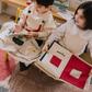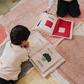 Discover the colorful world of fruits and veggies! A handcrafted textile book of fruits and veggies with colorful canvas patches that stimulate their visual senses and creativity. With a fluffy cover decorated with a rainbow, this sensorial book is a fun way to relate simple words with colors. It is made by upcycling textile scraps from our own factory making it a sustainable choice for your kids decor.