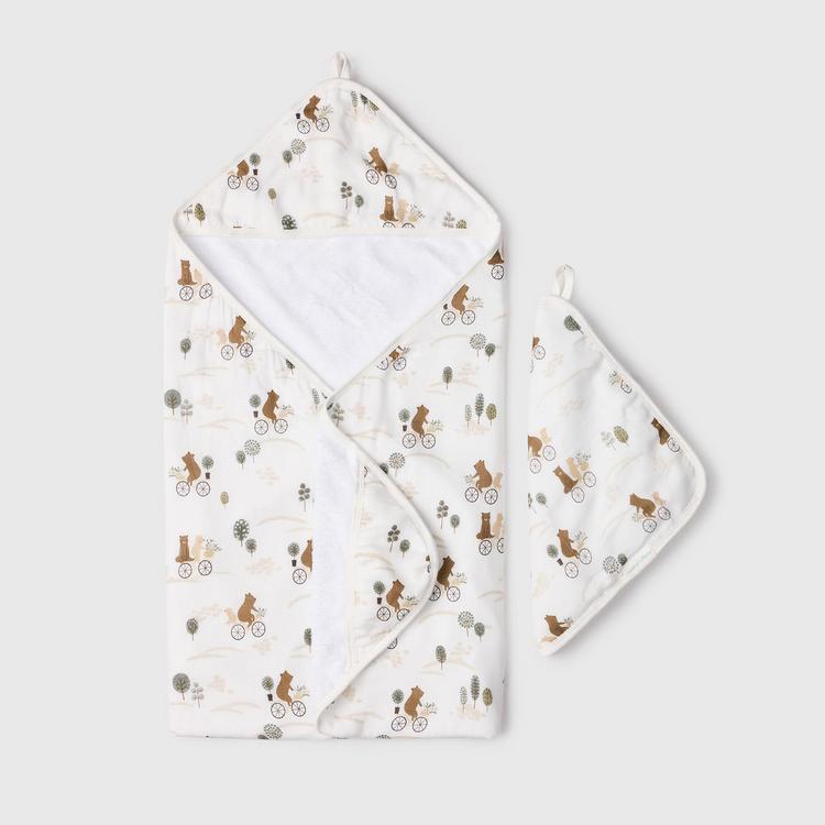 Our hooded towels have an ultra-absorbent and buttery-soft terry cloth backing, these towels are a comfy way to kick off your little one’s bedtime routine or use it at the beach or pool to keep their little bodies warm. The generously sized towel keeps heads and hands warm thanks to the hood and pockets, while the matching washcloth is gentle on the baby’s delicate skin.