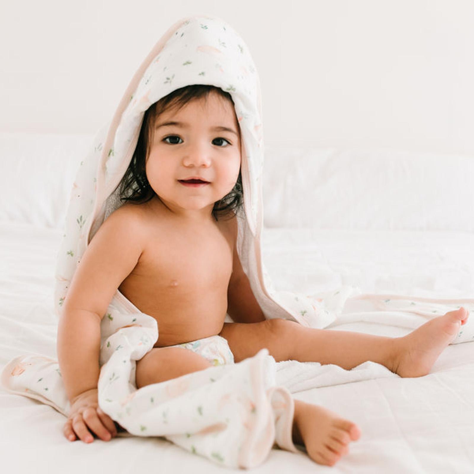 Our hooded towels have an ultra-absorbent and buttery-soft terry cloth backing, these towels are a comfy way to kick off your little one’s bedtime routine or use it at the beach or pool to keep their little bodies warm. The generously sized towel keeps heads and hands warm thanks to the hood and pockets, while the matching washcloth is gentle on the baby’s delicate skin.