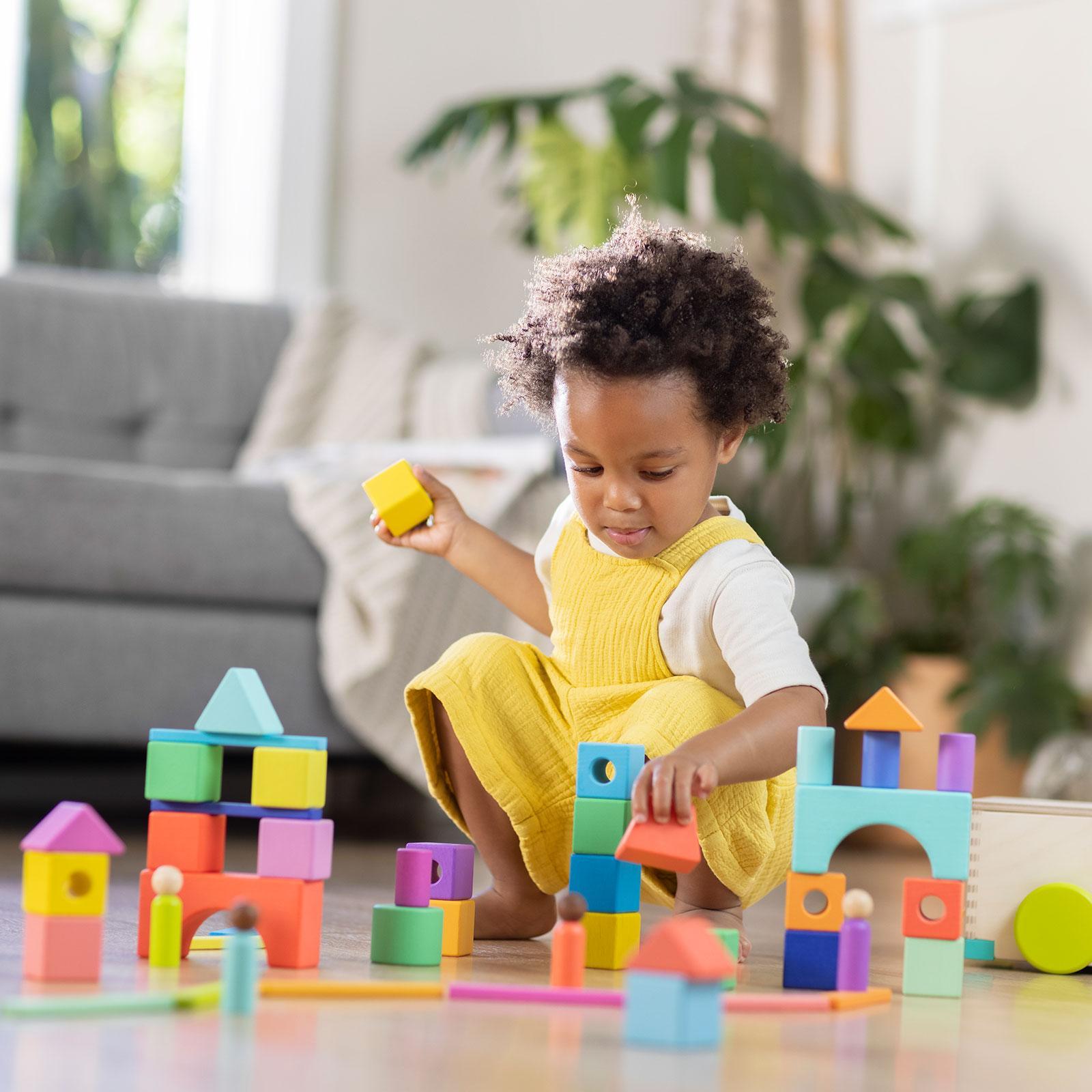 A brilliant, practical system of solid wood blocks for building spatial, language, and problem-solving skills. 70 heirloom quality pieces work with each other in more than 20 stage-based activities. Crafted by child development experts, these wooden toy blocks offer years of learning through play.