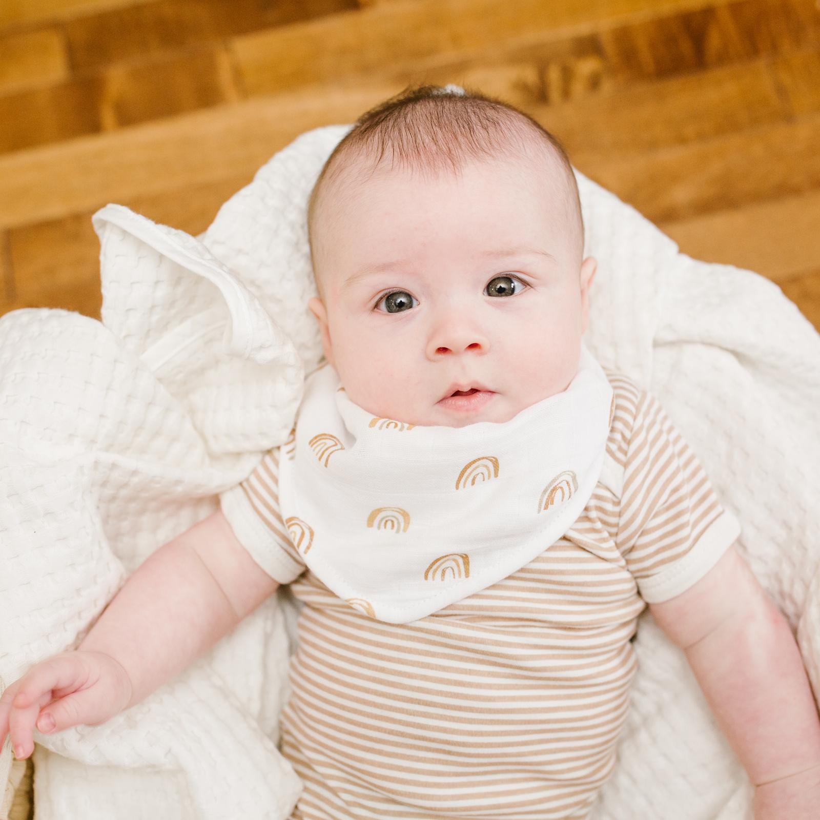 Our two layer bandana bibs offer stylish protection for drooling and teething babies. Sold as a two pack combo to mix and match with their outfit for the day