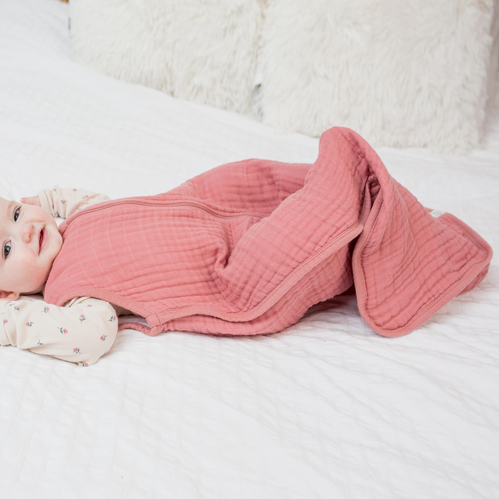 Use this sleep sack as a wearable blanket to keep little ones warm while they sleep and to eliminate loose blankets in the crib. Made with two layers of soft, breathable muslin to keep temperature regulated. Wear over pyjamas for extra comfort.