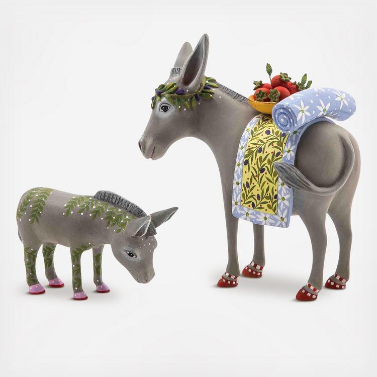 Celebrate the spirit of Christmas with the Patience Brewster Nativity Mother & Baby Donkey Figures. This two-piece handmade and hand-painted set includes a mother and baby donkey that complement the Patience Brewster Nativity sets.