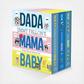 Fans new and old can discover Jimmy Fallon's bestselling trio of board books, Your Baby's First Word Will Be Dada, Everything Is Mama, and This is Baby all over again with this charming boxed set. Jimmy Fallon, one of the most popular entertainers in the world and NBC's Tonight Show host, was on a mission with his first children's book to have every baby's first word be DADA. And it worked! A lot of babies' first words were DADA. However, everything after that was MAMA. And then came BABY!