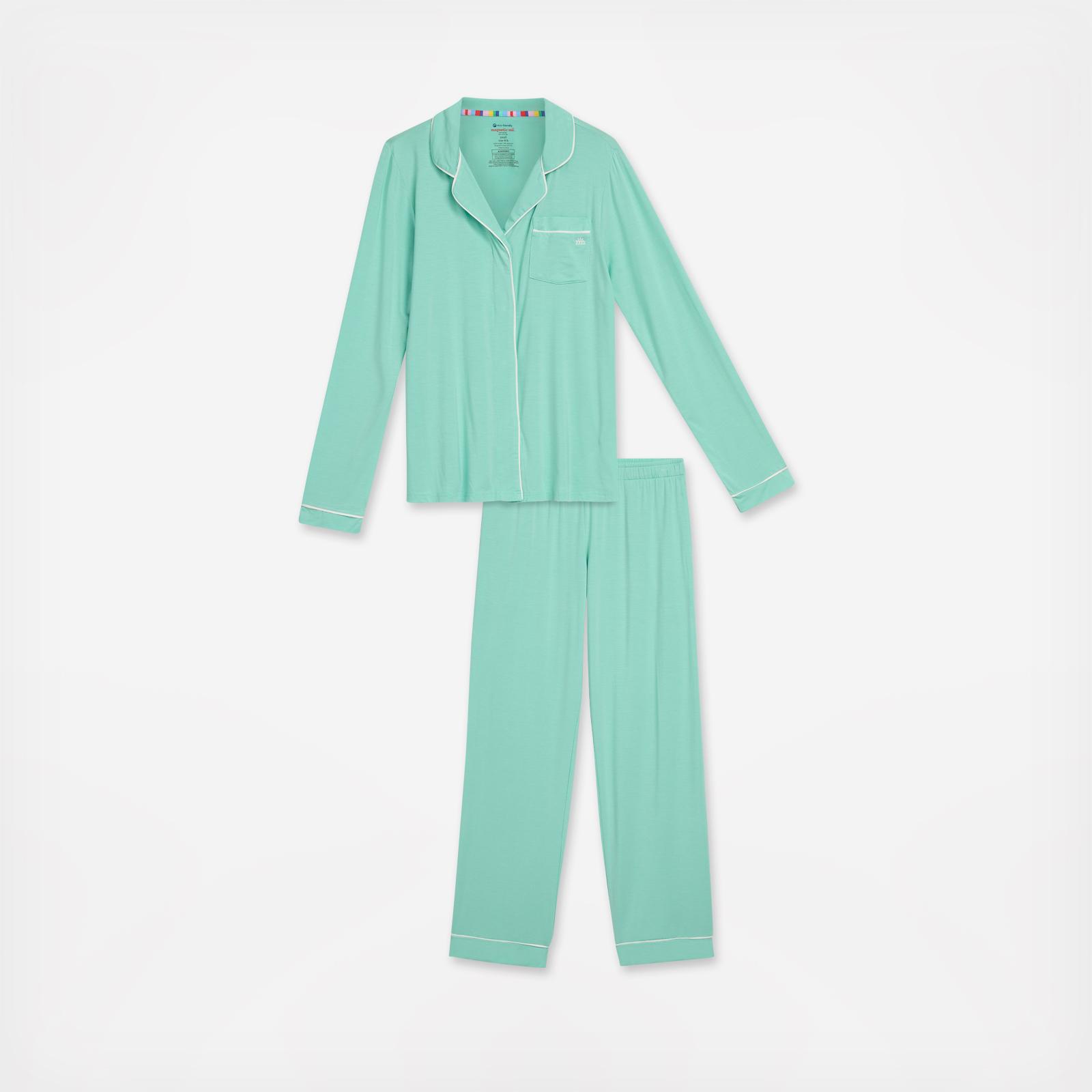 The women's classic with a twist long sleeve pajama set has so many details to love: magnetic-fastening top, temperature-regulating fabric, and classic piping design. made from eco-friendly TENCEL™ modal, these pajamas can withstand countless washes without pilling and the color never fades. did we mention the loose, drapey fit? they're the kind of pajamas dreams are made of.