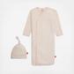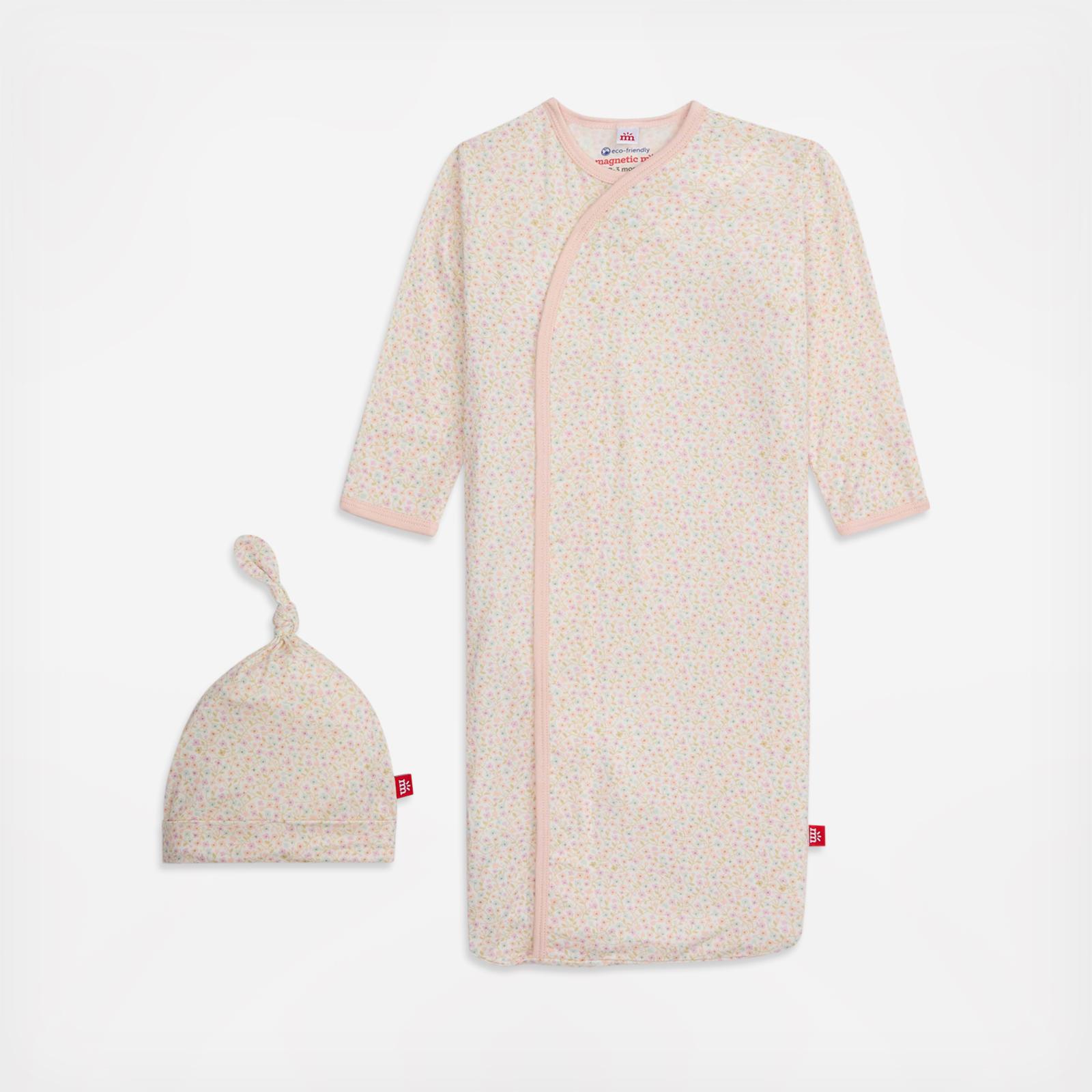 The cozy sleeper gown + hat set is a wardrobe staple for newborns who require constant diaper changes (aka all of them). with magnets down the front, baby stays in the gown during the diaper switcheroo: separate magnets, put on a freshy, click magnets, done. other amazing features: eco-friendly TENCEL™ modal fabric and built-in mitten cuffs.