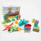 Melissa & Doug Blockables™ are connectable, stackable, and playable! The solid wood connect-and-play building blocks are perfect manipulatives to help preschoolers two and older boost developmental skills (fine motor, problem-solving, matching, storytelling, and self-esteem), while using their imaginations and having fun. Easy-to-grasp smooth, colorful wooden blocks fit together in a snap with large connectors that even little hands can push in and pull out. An illustrated guide shows how to arrange and link the Blockables™ to create multi-textured dinosaurs (T-rex, apatosaurus, pterodactyl, plesiosaurus, triceratops, stegosaurus), or kids can use their imaginations to mix, match, and combine pieces to make unique figures and play their own way! Kids can easily expand their collection - the 69-piece Dinosaur Play Set is compatible with all other Blockables™ play sets. The packaging folds out to convert into a fun play space and pieces store in the sturdy corrugated box with a soft handle for easy cleanup and portability.