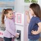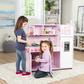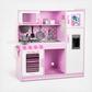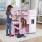 Budding young chefs can hone their craft in this beautifully designed, modern play kitchen! The easy to assemble chef's kitchen includes a refrigerator/freezer with innovative working ice maker that dispenses two included "ice cubes," an oven and stovetop with dials that turn, microwave with turning plate, sink with moving faucet and handle, grocery check list, movable hooks, and ample shelving and storage for easy cleanup. Detailed, illustrated instructions make this kitchen simple to put together. Assembled, it stands approximately 3.5 feet (1 meter) long and more than three feet (0.9 meters) high, roomy enough for multiple kids to play at once. Sturdy, top-quality wooden construction means it will stand up to years of creative make-believe meal-making! This product is certified by the Forest Stewardship Council. FSC certification ensures that products come from responsibly managed forests that provide environmental, social, and economic benefits, and that forests are protected for future generations.