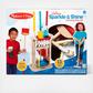 Turn clean-up time into playtime and have good, clean fun with realistic kid-sized cleaning accessories from Melissa & Doug! Make floors sparkle with the wooden long-handled broom, dustpan, and sweeper-mop with removable cleaning cloth. Polish surfaces with a fluffy hand duster, and wipe away grime with a sponge, spray bottle and reusable cloth towel roll attached to the wooden storage stand. There’s even a wooden-handled lint brush to keep clothes and furniture looking tip-top. Kids three and older will love keeping track of their chores on the reusable checklist as they help out around the house!