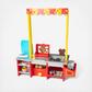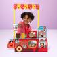 Pop play popcorn and serve favorite wooden versions of Disney treats and drinks from the wooden snack counter with awning, magnetic menu, reach-in “freezer,” popcorn popper, and butter pump; features Mickey Mouse, Minnie Mouse, and other Disney characters.