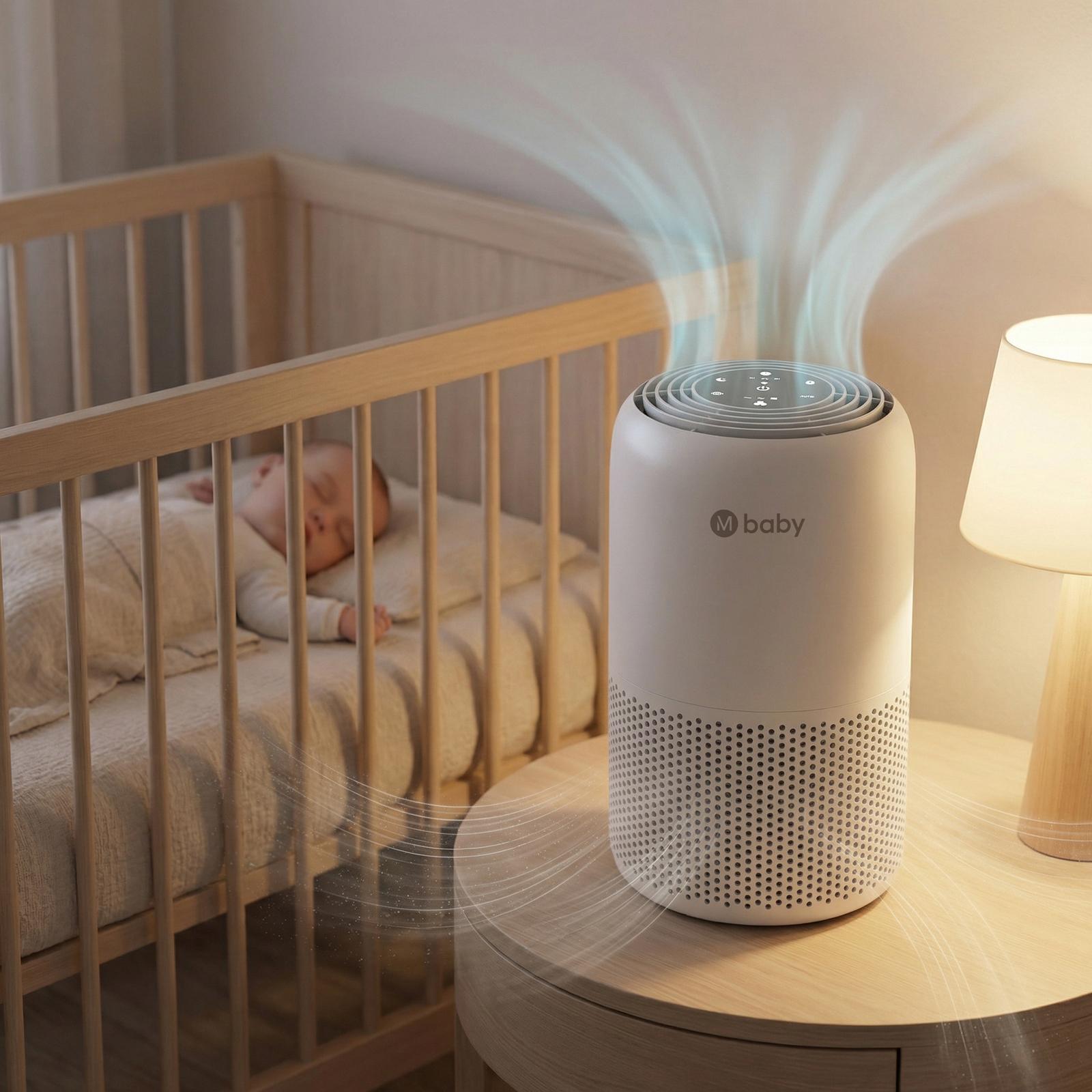 Create a cleaner, more comfortable nursery environment with the MIKO Smart Air Purifier, thoughtfully designed for families with babies. Its advanced 3 stage filtration system with Pre Filter, H13 True HEPA, and Activated Carbon helps capture 99.97% of dust, allergens, smoke, and household odors, supporting fresher indoor air where your little one sleeps and plays. Covering up to 770 sq ft, it is ideal for nurseries, bedrooms, and playrooms, while ultra quiet sleep mode operates as low as 24 dB to help maintain a peaceful rest. With convenient app control, parents can easily monitor air quality and adjust settings anytime for added peace of mind.