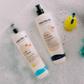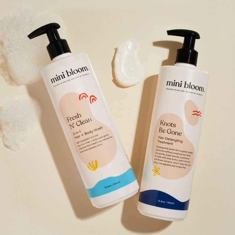 SO SAFE AND SO CLEAN! This bath set features our sulfate-free, 2-in-1 hair + body wash that gently cleanses from head to toe, plus our hair conditioning treatment for soft, shiny, knot-free strands.