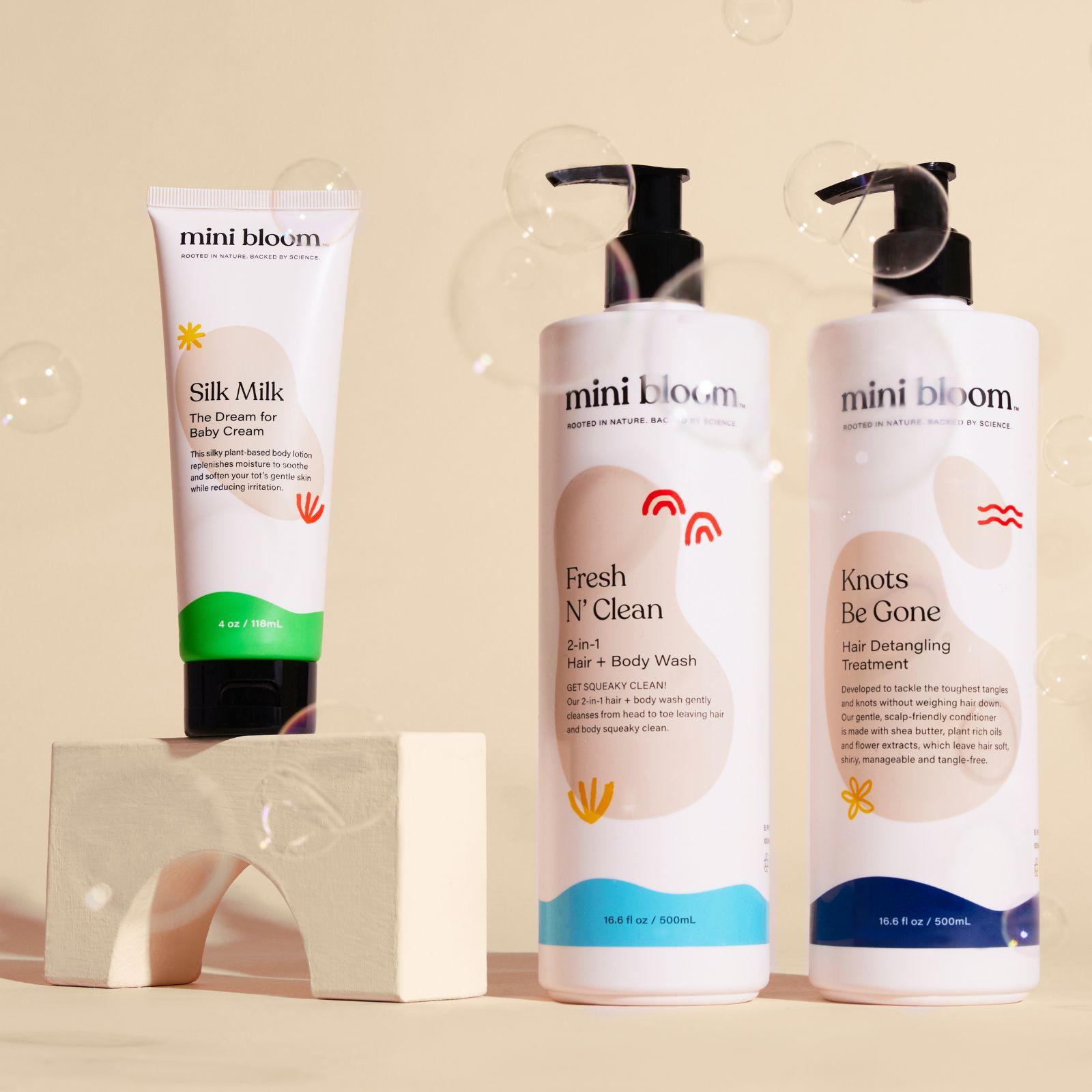 The Best of Bath Time Complete your little one’s bath time routine with these safe and soothing essentials. Featuring our 2-in-1 hair and body wash, detangler and body moisturizer, this set has everything they will need for softer, shinier strands and calmer, smoother skin.