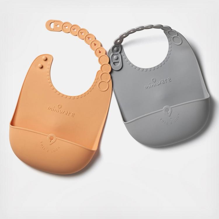 Roll, lock and store for no hassle clean up. This comfortable durable bib is a must-have when your baby begins to self-feed. This silicone bib is perfect for active families with its compact profile and locking function. Just roll, lock and store to clean up later while on the go! Roll & Lock bib is longer and wider than other bibs to support your child through all feeding and growth development stages.
