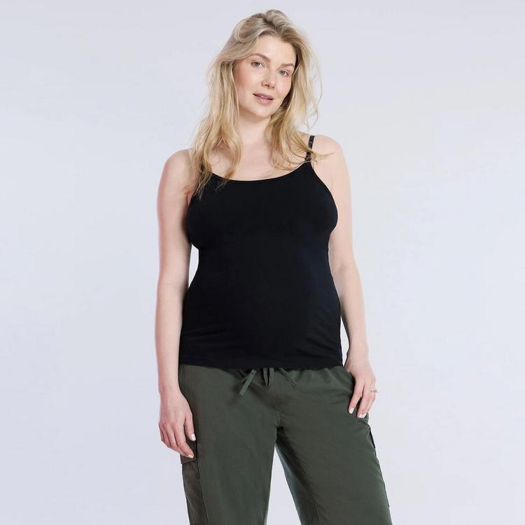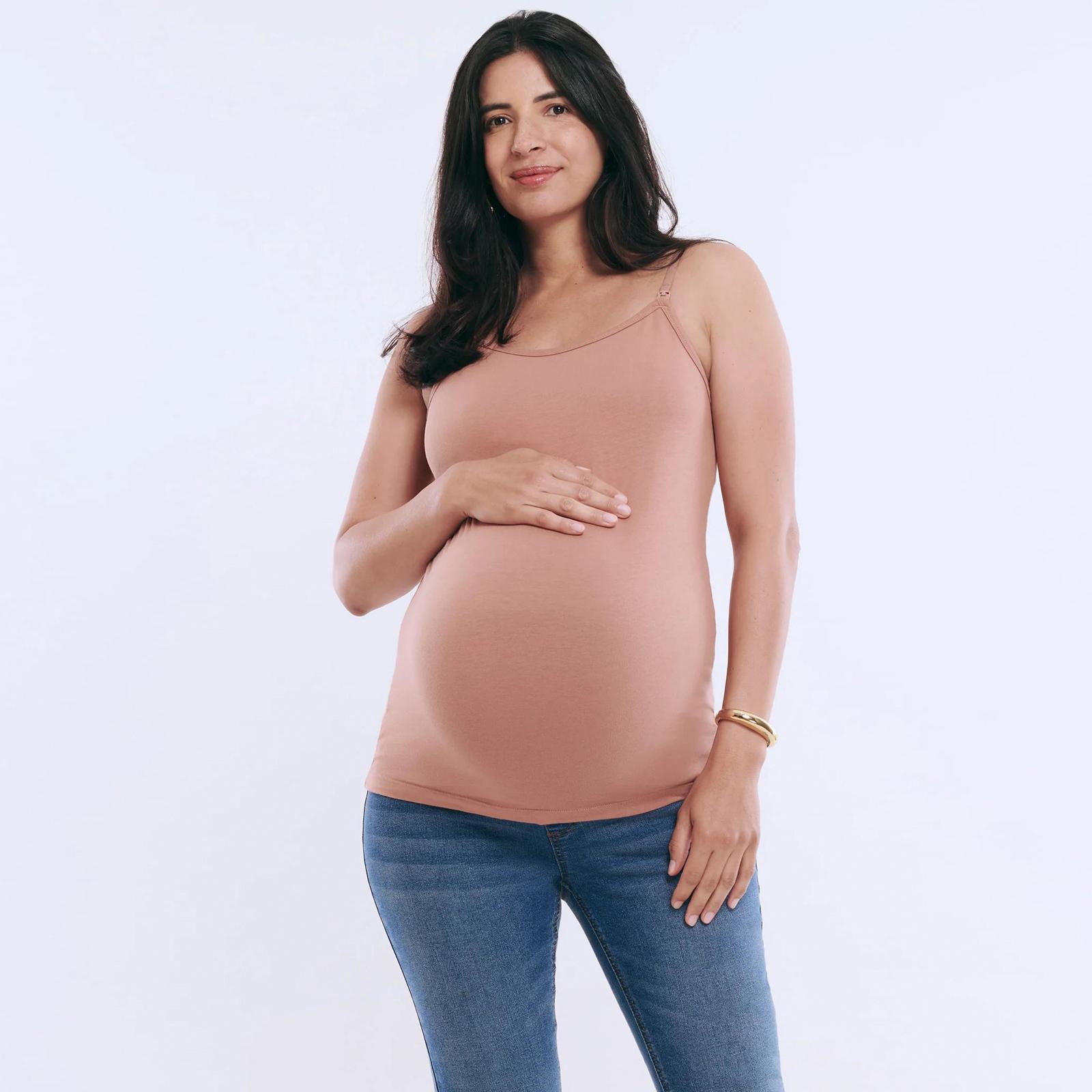 Motherhood's clip down nursing cami features a convenient clip-down mechanism for effortless breastfeeding or pumping on-the-go. This cami includes a built-in shelf bra that provides gentle support without added padding, ideal for all-day wear. Made from super cozy and soft fabric, it ensures all-day comfort and is perfect for snuggling with your baby, making it a must-have maternity essential for any new mom or mom-to-be!