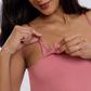 Motherhood's clip down nursing cami features a convenient clip-down mechanism for effortless breastfeeding or pumping on-the-go. This cami includes a built-in shelf bra that provides gentle support without added padding, ideal for all-day wear. Made from super cozy and soft fabric, it ensures all-day comfort and is perfect for snuggling with your baby, making it a must-have maternity essential for any new mom or mom-to-be!
