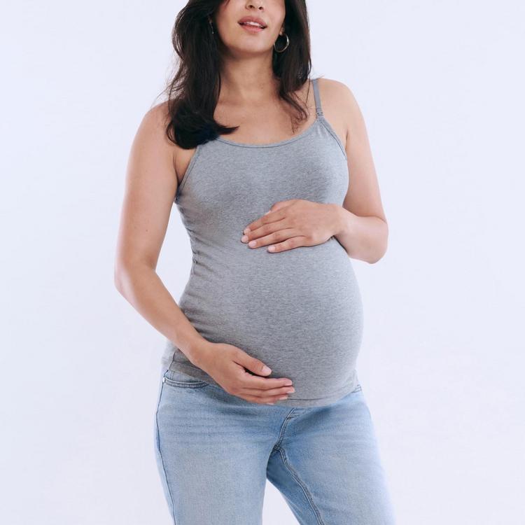 Motherhood's clip down nursing cami features a convenient clip-down mechanism for effortless breastfeeding or pumping on-the-go. This cami includes a built-in shelf bra that provides gentle support without added padding, ideal for all-day wear. Made from super cozy and soft fabric, it ensures all-day comfort and is perfect for snuggling with your baby, making it a must-have maternity essential for any new mom or mom-to-be!