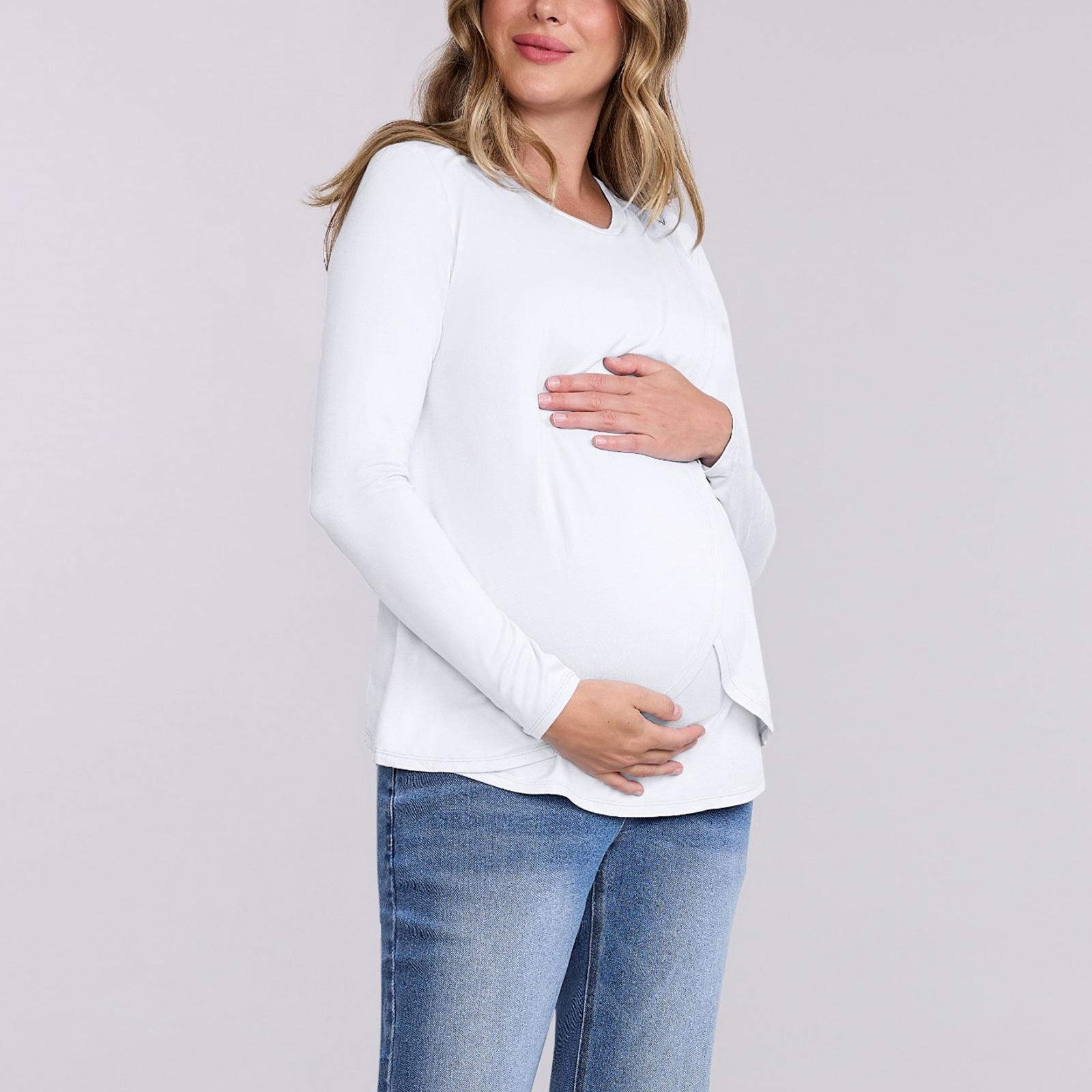 Crewneck Long Sleeve Draped Nursing Maternity Tee