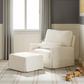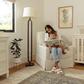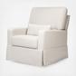 A beautifully crafted waterfall skirt softens the track arm silhouette of Crawford Glider. The plush pillow back cushion brings nursery comfort to a new level along with a lumbar pillow and wide seat. Its smooth, back-and-forth gliding motion helps you rock your baby to sleep with ease, while the convenient swivel creates an inviting repose for both you and your baby.
