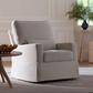 A beautifully crafted waterfall skirt softens the track arm silhouette of Crawford Glider. The plush pillow back cushion brings nursery comfort to a new level along with a lumbar pillow and wide seat. Its smooth, back-and-forth gliding motion helps you rock your baby to sleep with ease, while the convenient swivel creates an inviting repose for both you and your baby.