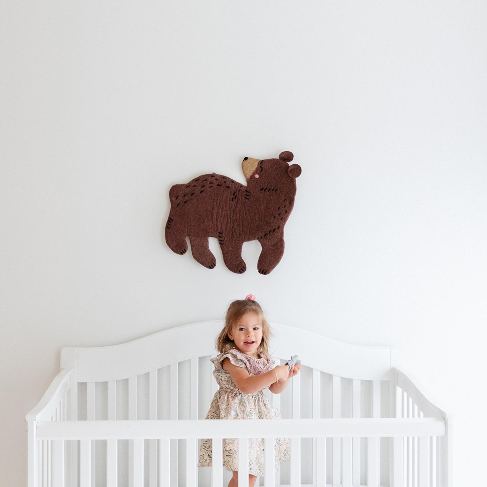Add a warm woodland touch to your child’s space with this handmade bear wall art. Featuring a charming bear design, this piece brings gentle character and nature-inspired style to nurseries, playrooms, and woodland-themed rooms while creating a calm and inviting environment. This handmade wall décor is Fair Trade certified and crafted using nontoxic materials and ethical craftsmanship by skilled women artisans. Lightweight and easy to hang, it is perfect for nursery wall décor, woodland theme nurseries, forest nurseries, and gender-neutral baby rooms. Each piece is carefully made, making it a meaningful addition to your child’s space.