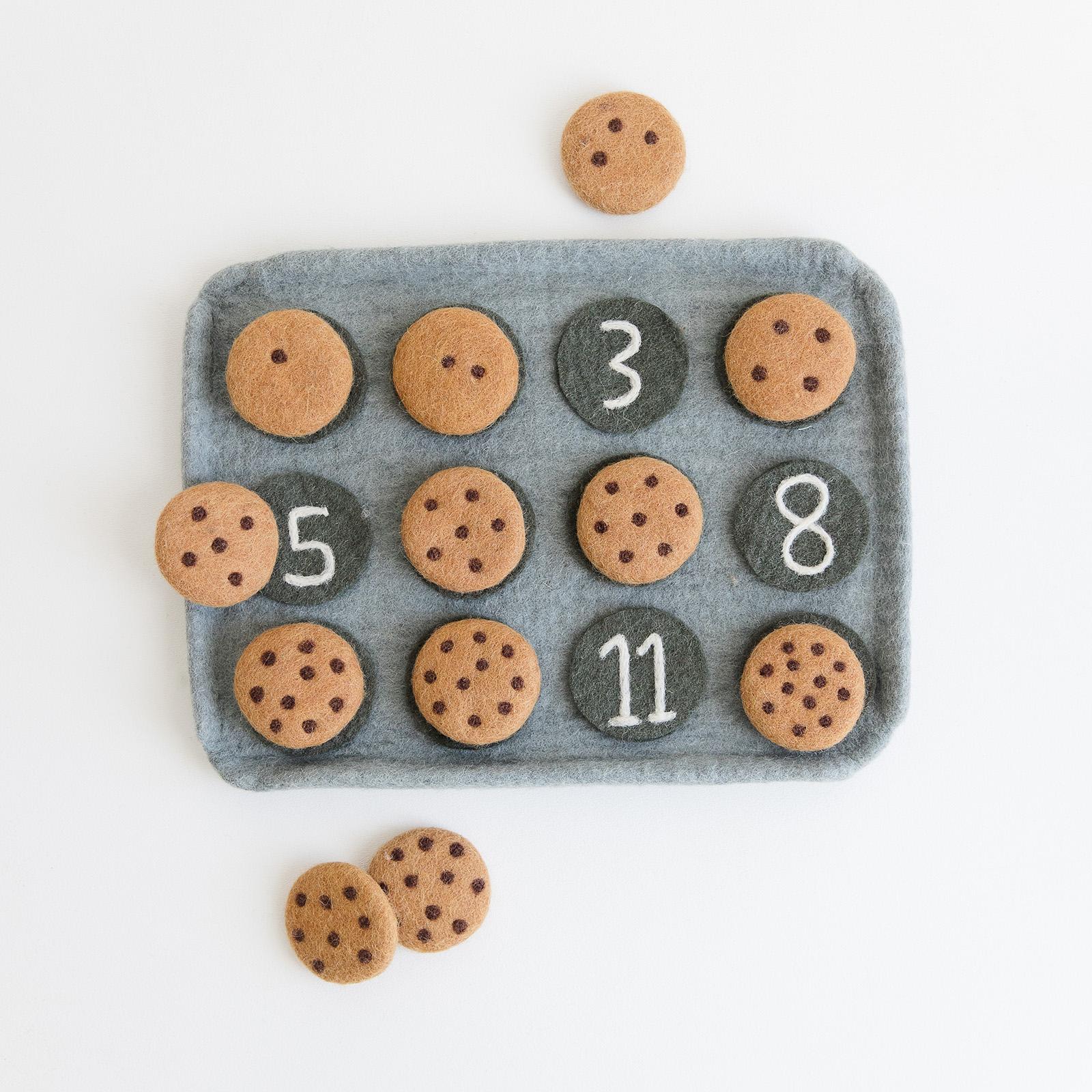 Help children learn numbers through hands-on play with this handmade cookie counting set. Featuring cookies with numbered chocolate chips that correspond with matching spaces on the tray, this educational toy supports number recognition, counting skills, and early math learning while encouraging interactive and imaginative play. Each piece is Fair Trade certified and crafted using nontoxic materials and ethical craftsmanship for Montessori learning, preschool activities, and toddler educational play. This cookie play set helps develop fine motor skills, sorting abilities, and foundational math concepts through engaging pretend play.