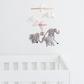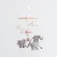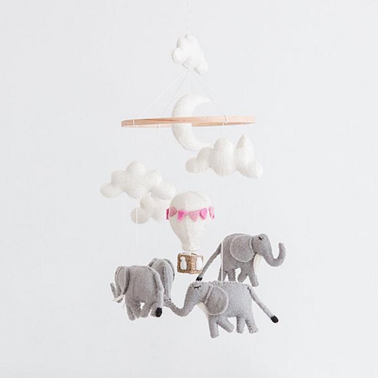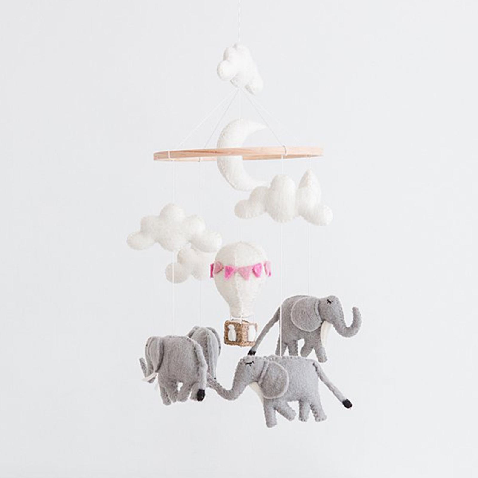 Create a dreamy and uplifting focal point in your baby’s nursery with this handmade elephant baby mobile. Featuring sweet elephant figures and a hot air balloon in the center, this crib mobile adds gentle overhead movement while complementing safari nurseries, animal theme nurseries, hot air balloon nurseries, and gender-neutral baby rooms. Each handmade nursery mobile is Fair Trade certified and comes ready to hang with a sturdy cotton loop for easy display above a crib, bassinet, or changing table. Additional hanging hardware or crib arm not included. Due to the handmade nature of this baby mobile, colors and sizes may vary slightly, making each piece unique.