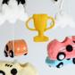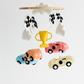Add an energetic and playful touch to your baby’s nursery with this handmade racing car baby mobile. Featuring race cars and motorsport-inspired elements, this crib mobile creates gentle overhead movement while complementing car theme nurseries, transportation nurseries, vehicle nurseries, and gender-neutral baby rooms. Each handmade nursery mobile is Fair Trade certified and comes ready to hang with a sturdy cotton loop for easy display above a crib, bassinet, or changing table. Additional hanging hardware or crib arm not included. Due to the handmade nature of this baby mobile, colors and sizes may vary slightly, making each piece unique.