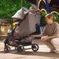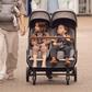 Side-by-side double stroller that fits through standard doorways and features independent seats to suit each child's needs for twice the adventures.