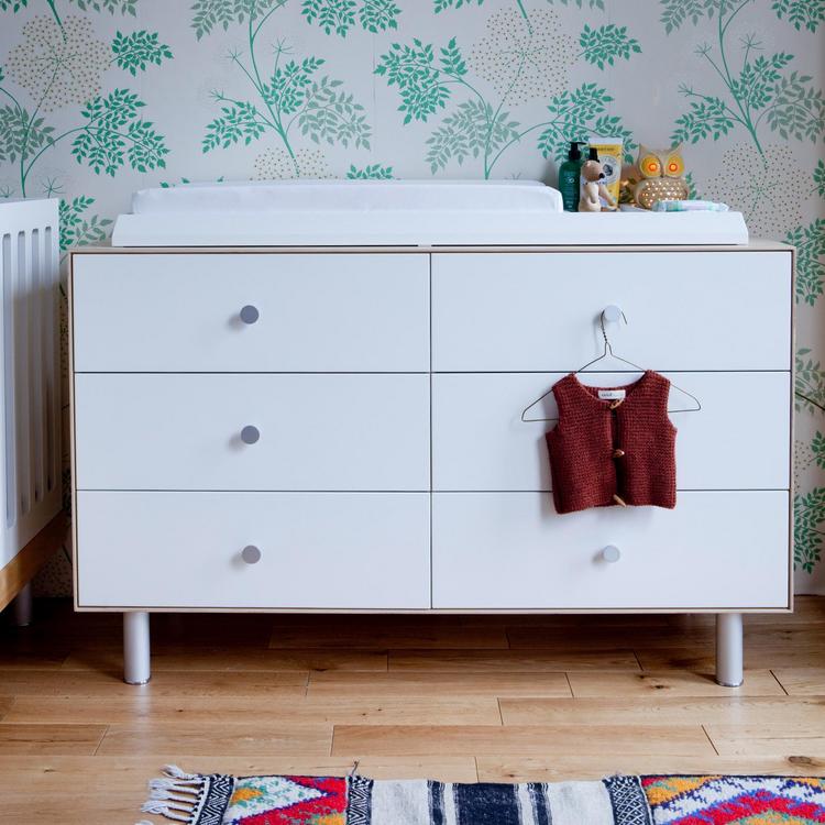 The XL Changing Pad Station is designed to secure to Oeuf's 6-drawer dressers and doubles as a shelving unit, once the diaper years are done. When used as a changing station, the compartments offer plenty of convenient storage space for baby care products. When used as a shelf, the XL station is also ideal for displaying your child's favorite treasures when mounted to the wall. The XL station is available to coordinate with all room decor.