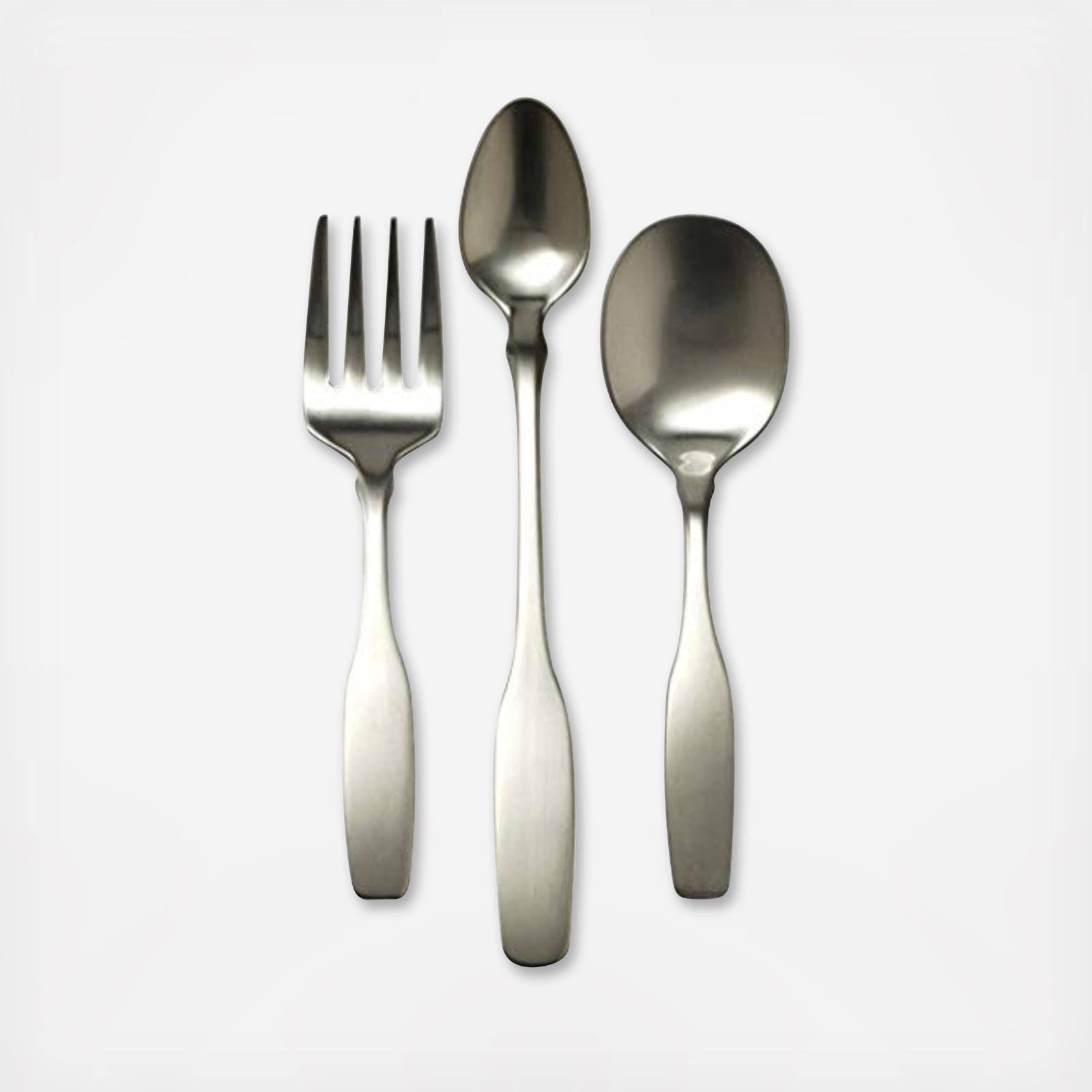 The Paul Revere baby flatware set includes a feeding spoon, baby spoon, and baby fork. Just like adult-size Paul Revere flatware, these pieces have a timeless simplicity that harkens back to colonial New England style. It's useful for everyday feeding and elevating the little one's place setting on special occasions.