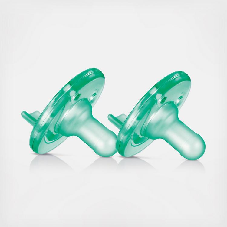 Philips Avent Soothie Pacifier helps calm and soothe newborns. Designed for babies from birth to 3 months old, the Soothie Pacifier is made of hospital-grade, BPA-free and latex-free silicone for strength, comfort and durability. Its one piece construction is specially sized and shaped for a newborn's mouth and adheres to the American Academy of Pediatrics guidelines. Distributed in hospitals nationwide, this pacifier is uniquely shaped to comfortably fit newborn mouths to calm and soothe without inhibiting normal oral development. Transparent, tasteless and odorless, the nipple is strong and smooth and resists becoming sticky. Even after extended use, it won't become discolored or misshapen. The Soothie Pacifier can be sterilized using a Philips Avent sterilizer and is dishwasher safe.