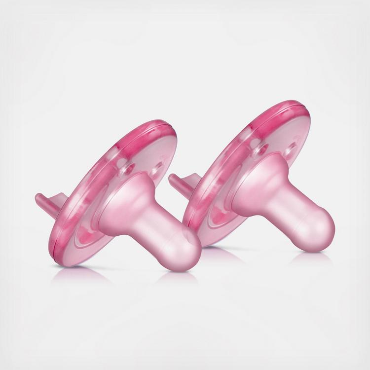 Philips Avent Soothie Pacifier helps calm and soothe babies. Designed for babies 3-18 months, the Soothie Pacifier is made of hospital-grade, BPA-free and latex-free silicone for strength, comfort and durability. Its one piece construction is specially sized and shaped for baby's mouth and adheres to the American Academy of Pediatrics guidelines. Distributed in hospitals nationwide, this pacifier is uniquely shaped to comfortably fit little mouths to calm and soothe without inhibiting normal oral development. Transparent, tasteless and odorless, the nipple is strong and smooth and resists becoming sticky. Even after extended use, it won't become discolored or misshapen. The Soothie Pacifier can be sterilized using one of Philips Avent sterilizers and is dishwasher safe.