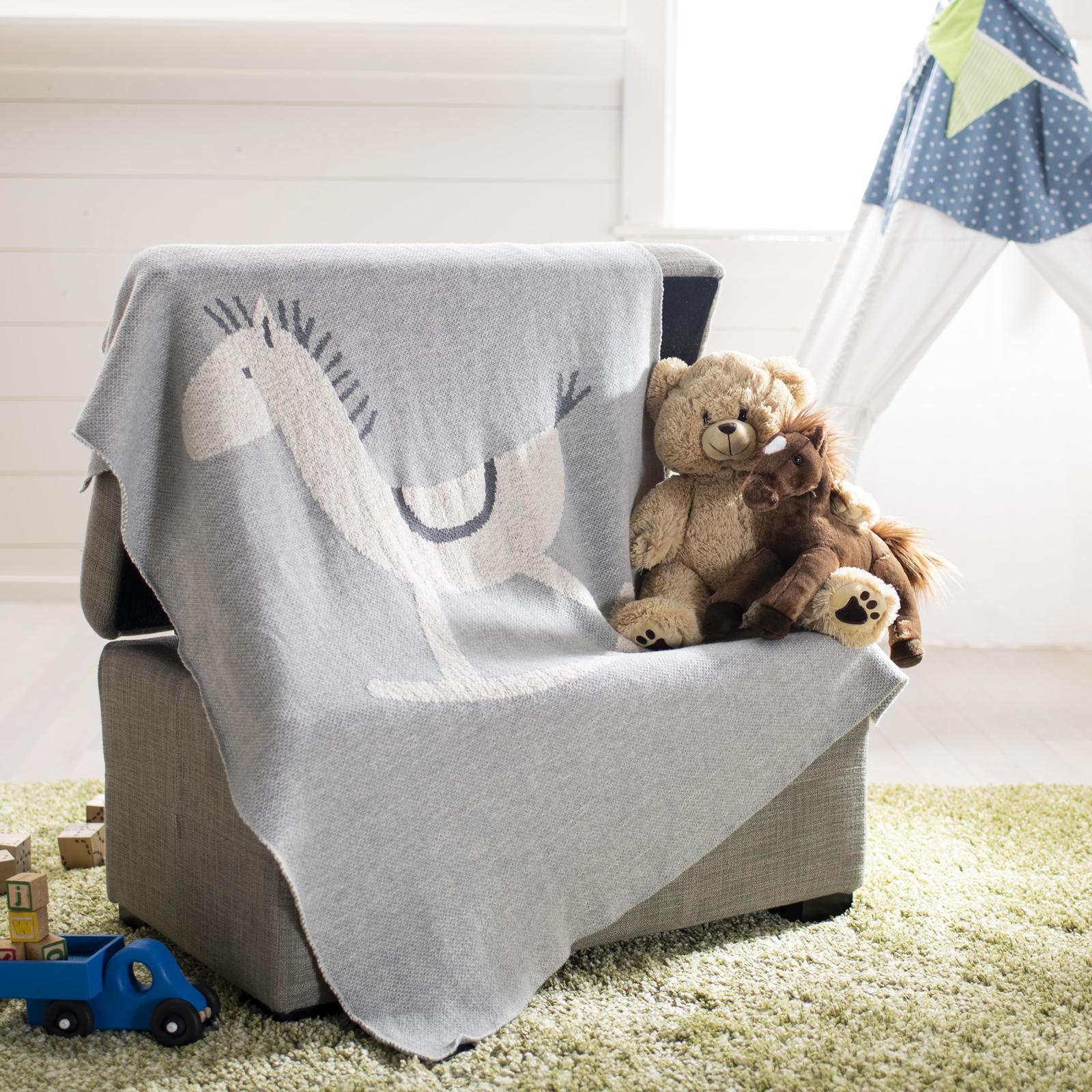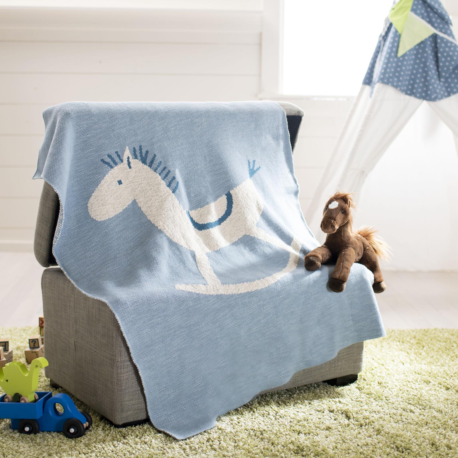 The Tater Trot Throw nestles your little one in the comfort of a soft cotton throw and the playful whimsy of an adorable rocking horse. This gender neutral baby blanket is the accessory they'll always want to keep close.
