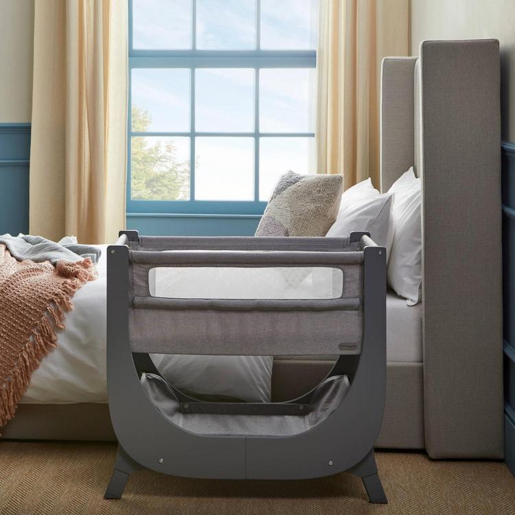 Shnuggle Air Lite Bedside Crib – Safe, Breathable, and Award-Winning Sleep. Give your newborn a safe and comfortable start with the Shnuggle Air Lite Bedside Crib, designed with breathable mesh sides and a compact, lightweight frame. Dual mesh panels, including an extra-large outer panel, maximize airflow to keep your baby cool and comfortable, while offering parents peace of mind with improved visibility. The whisper-quiet drop-down side and rigid safety wall make night-time feeds and comforting easier, while keeping your baby secure for bedside sleeping. Six height settings fit most beds (up to 27.5 in. mattress height), and the gentle incline option helps ease colic and reflux. A firm, hypoallergenic mattress supports safe sleep, and removable, washable fabrics make cleaning simple. Awarded Gold at the 2024 Junior Design Awards, the Air Lite blends convenience, style, and safety. Use it as a bedside crib or in standalone mode, complete with a spacious storage hammock for baby essentials. The Shnuggle Air Lite – a breathable, award-winning crib for a safer, more restful sleep.