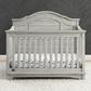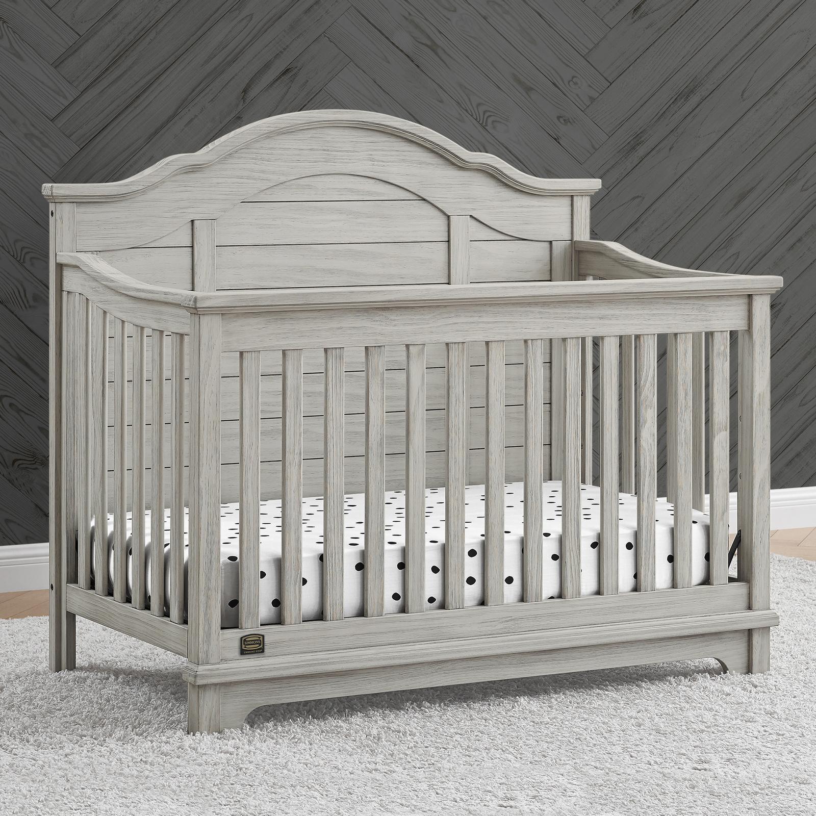The elegant curves and shiplap-inspired headboard of the Asher 6-in-1 Convertible Baby Crib by Simmons Kids are brought to life with a lightly textured finish. A great option for your baby's nursery, this convertible crib features a dramatic silhouette that will make it the focal point of any bedroom for years to come. It's grow-with-me design features three adjustable height levels that allow the crib to be lowered as your child grows, plus it converts from a crib, to a toddler bed, sofa, daybed, full size bed with headboard or full size bed with headboard and footboard. The only bed your little one will ever need, this versatile crib will take you from the nursery to high school, and all the years in between. Toddler Guardrail included; Full Size Bed Rails sold separately. Given the hand applied nature of this baby crib’s finish, variations in the wood are to be expected and celebrated.