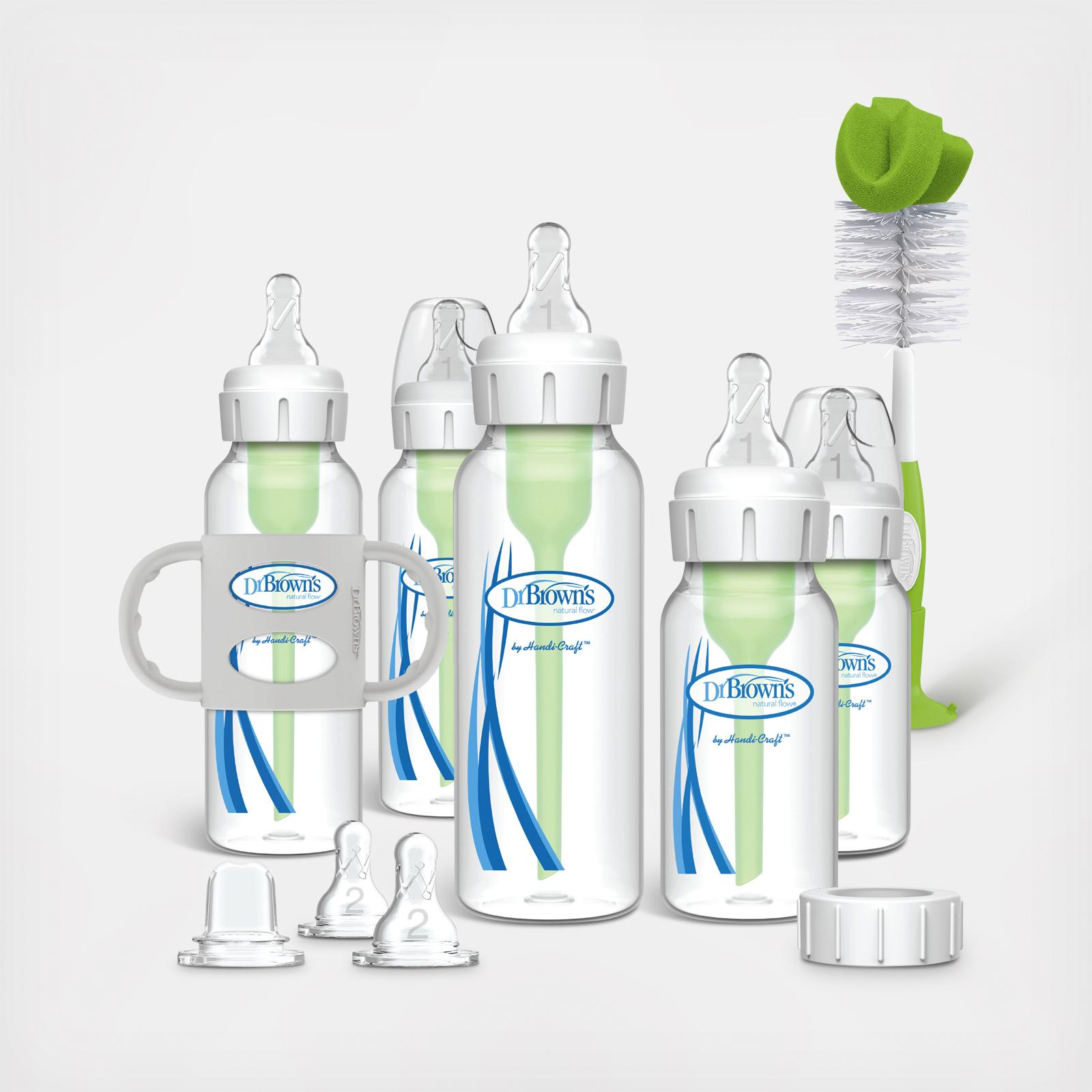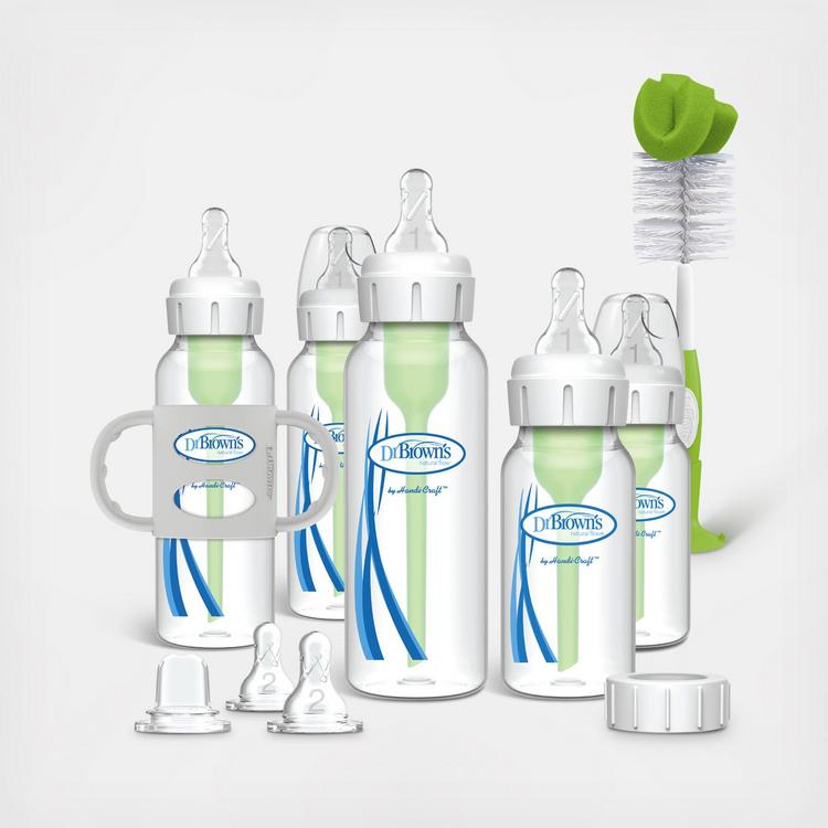 Teach baby new sipping skills with Dr. Brown’s® Options+™ Narrow Bottle to Sippy Gift Set! Dr. Brown’s award-winning anti-colic baby bottles feature an internal vent system that is clinically proven to reduce colic, better preserves nutrients in breastmilk and formula, and decreases spit up, burping and gas. Replace baby’s bottle nipple with the Sippy Spout to easily turn your Dr. Brown’s® Options+™ Narrow Bottle into a sippy bottle to ease the transition from bottle to cup. Encourage independent sipping with easy-to-hold Silicone Handles. The Storage/Travel Cap and Bottle Brush make bottle storage and clean up a breeze. This gift set is a baby registry must-have and is dishwasher (top rack) and sterilizer safe.