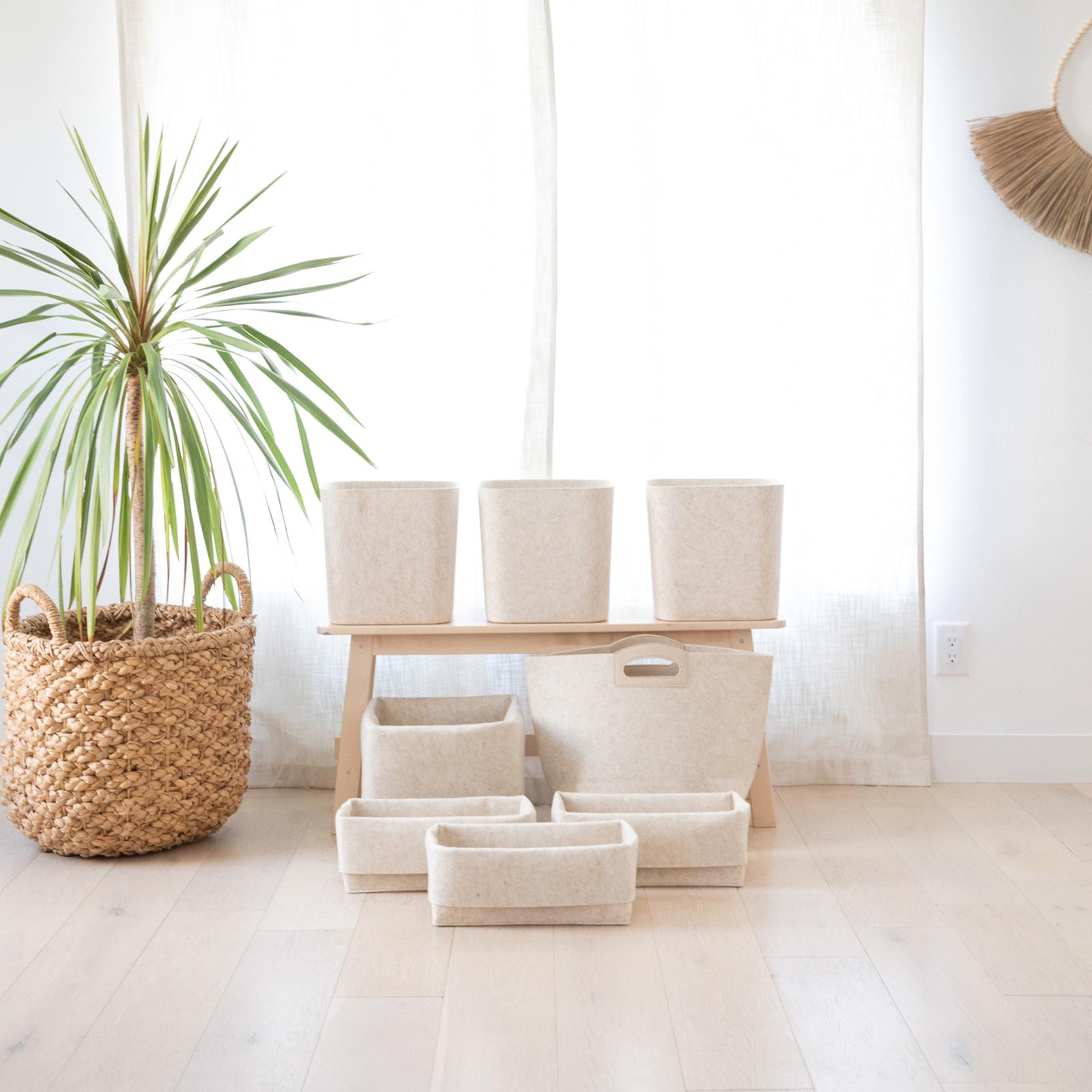 This is the collection for a great space transformation! We love the handle bin for indoor/outdoor living and trips to the farmers market, the flex bin for towel storage in a bathroom, the small flex bins for the inside of drawers and on top of counters and the Sculpted Bins for shoes, handbags, sweaters, and jeans. SortJoy Bins are perfect for the playroom, kitchen, pantry, bedroom, living room and so much more.