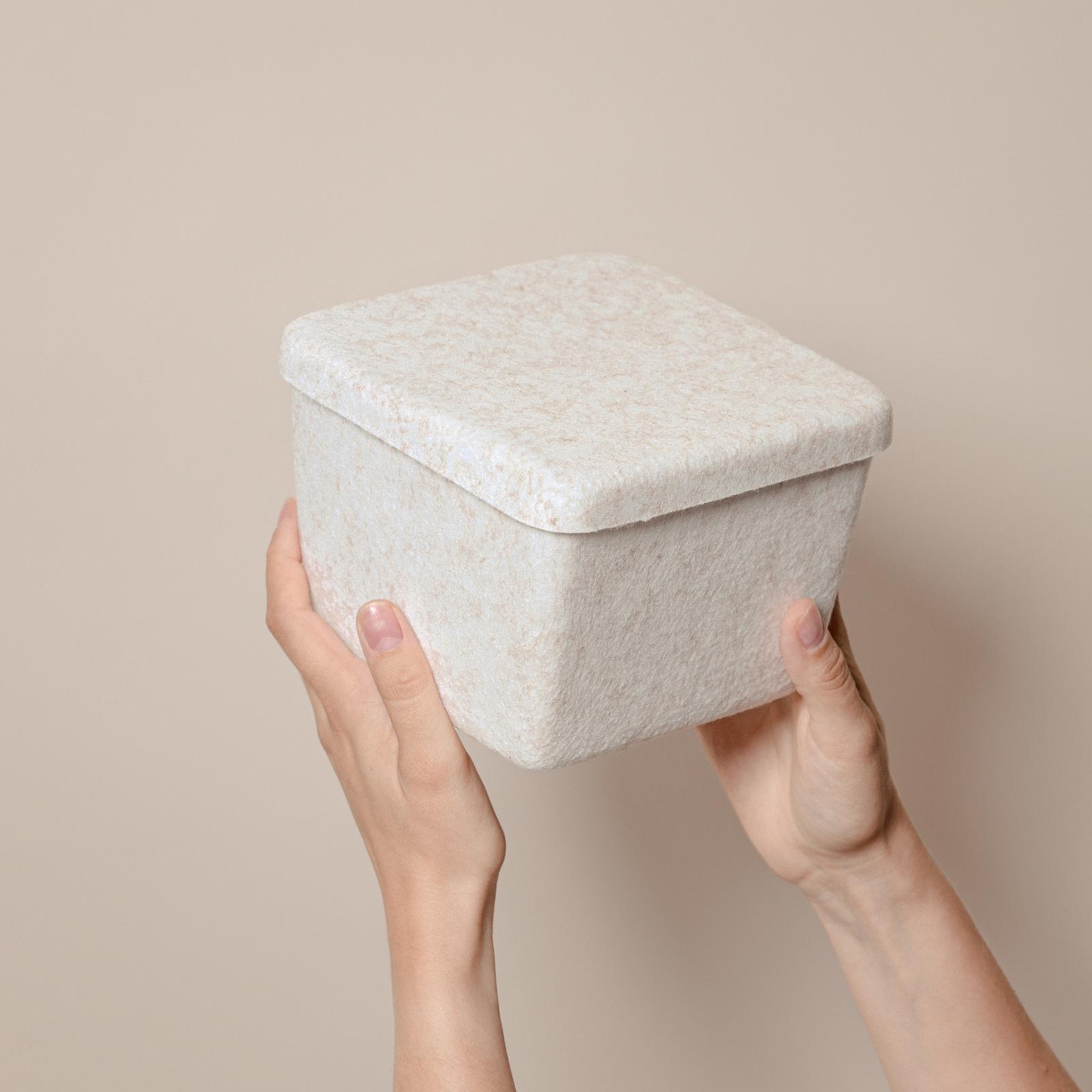 Elevate your organization with our Sculpted Petite Bin with Lid, a perfect blend of style and functionality. This compact storage solution is ideal for keeping your smaller items neatly arranged. Made from durable felt fabric with a refined sculpted design, it’s as elegant as it is practical. Whether you’re tidying up your office, bedroom, entryway, or bathroom, this small bin is the perfect helper for a clutter-free space. Can be used as a drawer organizer or out on a counter or table.