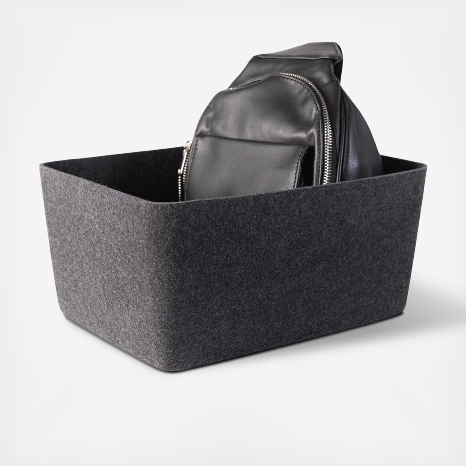 Care Instructions: These bins are made of felt derived from post-consumer recycled plastic. Contents include between post-consumer recycled PET and non recycled PET. These bins can be hand washed. Please note that due to the nature of this recycled material, there will be slight color variations in the fabric.