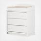 A perfect solution for small spaces, this compact changing table from the Cotton Candy collection provides everything you need for a changing table and dresser. Its 3 large drawers give you all the storage space you need for clothing, bedding, and toys. The beveled top edge, long legs, and white ceramic knobs make this piece special. Once baby outgrows the changing table, easily transform it into a dresser by removing the changing pad. The changing table is perfect for babies up to 30 lb. Requires complete assembly by 2 adults (tools not included).