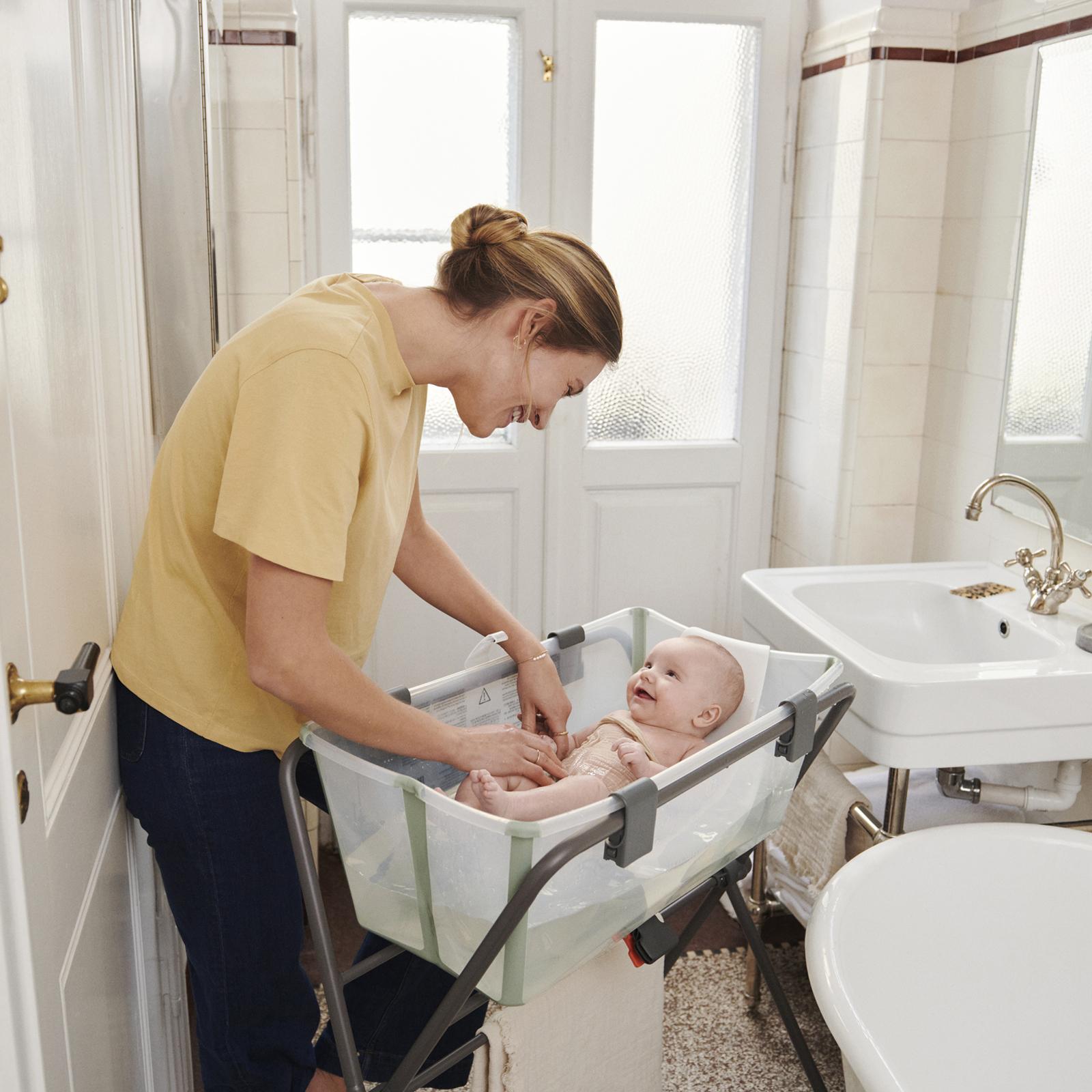 The Stokke® Flexi Bath® Stand is designed to bring you and your baby closer for bath time bonding and fun. Made exclusively to fit the Stokke® Flexi Bath®; it’s designed for safety, ease of storage and convenience with everything close at hand. The tub lock also means the stand stays folded and erected unaided. It’s also one of the first stands to meet the new EU regulations for bath stands (EN 17072:2018). Can be used for bathing newborns and right up until they can stand unaided. Avoid backache from kneeling on the floor with this sturdy, ergonomic bath time helper. Made with functionality, comfort and bonding at the core.