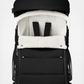 Thanks to its sherpa lining, the footmuff offers optimal protection. In very cold weather, the fleece hood with drawstring keeps your baby even warmer. To adapt to all seasons, the hood is reversible and the upper part of the footmuff is fully detachable.