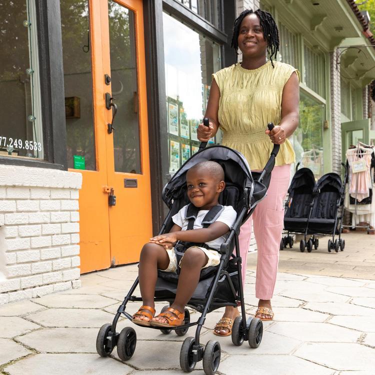 With the Summer 3D Mini Convenience Stroller, you don’t have to sacrifice any features you want in a stroller. It’s mini, but mighty for long-term use and full of premium features for both parents and their little ones. This convenience stroller has a durable, lightweight and stylish aluminum frame that weighs only 11 pounds. With a compact, easy to fold frame, you can be on-the-go running errands or traveling or stow and go with ease. Some of the parent-friendly features included in this lightweight stroller include: 2 cup holders, a storage pouch, storage basket, auto-lock, anti-shock front wheels, lockable rear wheels and more. The comfort features for baby include: a full-sized seat, multi-position recline & padded seat back, hassle-free canopy with pop out sun visor, padded 5-point safety harness and more.