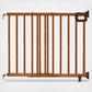 Specially designed for use at the top or bottom of stairs, the Summer Deluxe Stairway Simple to Secure Wood Gate is secure, stylish, and convenient. This 32 inch tall baby and dog gate fits openings 30 inch to 48 inchwide and can be mounted on stairways or in doorways using the secure hardware installation system. This gate features a locking indicator and a comfort grip handle for one-handed operation. The extra-wide door opens the full width of the gate, making it easy to walk through. Over stairs, the door stopper helps prevent the door from swinging outward. The no-threshold design helps to minimize tripping, while a support foot provides extra stability. Package includes hardware installation kit. Use the unique Precision Fit Template to ensure correct, easy installation - no measuring or unnecessary drill holes! For a seamless installation, ensure that stairway handrails do not encroach on the site where you plan to mount the gate. Recommended tools: drill, Phillips-head screwdriver, pencil, measuring tape.