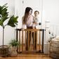 The Summer West End Safety Gate is inspired by traditional home decor trends. The metal frame and honey oak stained wood door is a great accent to any home. Perfect for wide spaces and open floor plans, this 30 inch tall baby gate can fit openings anywhere from 36 inch to 60 inch wide with the use of the three included extension frames (one 4-inch, one 7-Inch, and one 10-inch). Measuring at 27 inch, the baby gate’s extra-wide door is wider than traditional gate openings and allows for easier walk-through. The door also features an integrated handle for easy use. The West End Safety Gate is equipped with an auto-close feature that gently closes the gate door behind you, as well as a hold-open mechanism that keeps the door open when needed. The two adjustable built-in door stoppers will prevent your gate from swinging open, making it the ideal gate for toddlers and small pets. Easily install this baby gate on stairways with the included kit, or by using the no drill doorway mount for in-between doorways. Tools are required for hardware mounting.