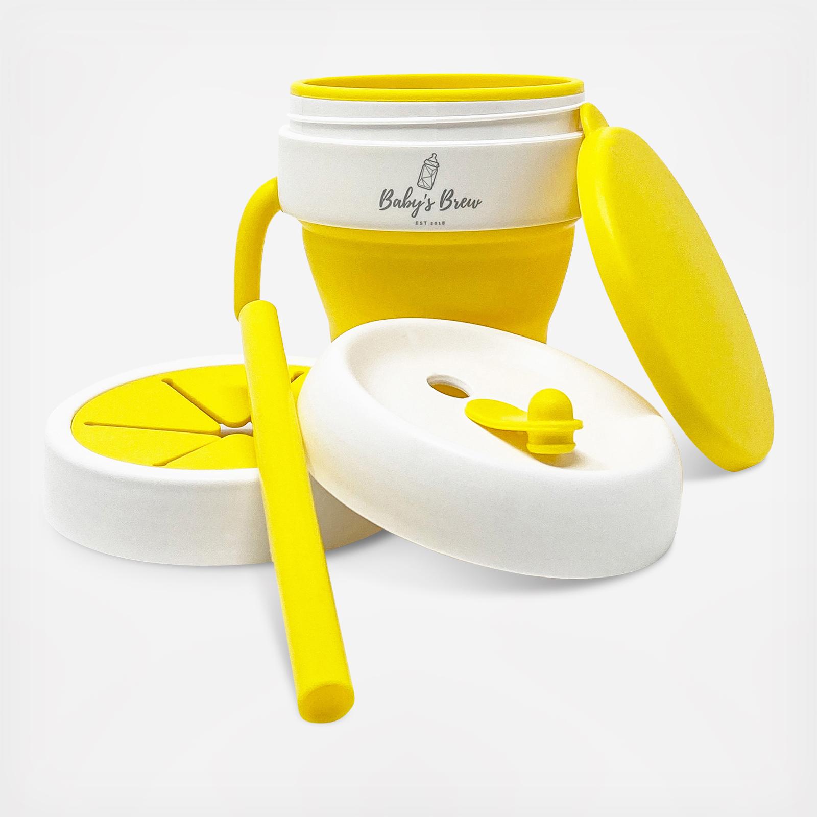 The 2-in-1 Snack Cup from The Baby's Brew is the perfect snack solution for your little ones. This innovative snack cup is designed to be soft and collapsible, with an interchangeable snack cup or straw sip lid. It's the perfect cup for toddlers to use on their own. The secure snack cup lid allows for mess-free snacking on the go, keeping snacks fresh and contained. The soft silicone straw promotes healthy oral development and proper tongue positioning habits. Transitioning children from bottles to straw cups is recommended by doctors over traditional-style sippy cups.