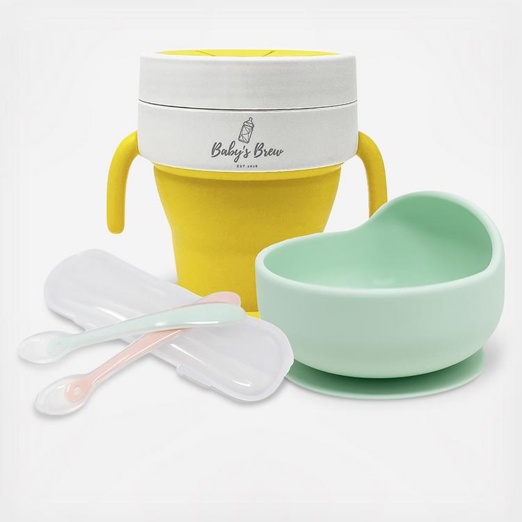 The perfect trio for your toddler’s mealtime adventures! This bundle includes our innovative 2-in-1 snack cup, a silicone feeding bowl, and a set of spoons, all designed to make feeding time fun and mess-free. Our 2-in-1 snack cup keeps little hands busy and floors clean with its spill-proof design. The silicone bowl features a sturdy suction bottom to stay put and prevent any unexpected flights across the room. The spoons are perfectly sized for tiny mouths and gentle on delicate gums. Say goodbye to spilled snacks, flying bowls, and messy spoons! Whether you're at home or on the go, the Bite Size Bundle ensures your little one enjoys every bite with a smile. Made from safe, durable, and BPA-free materials, this set is as adorable as it is practical.