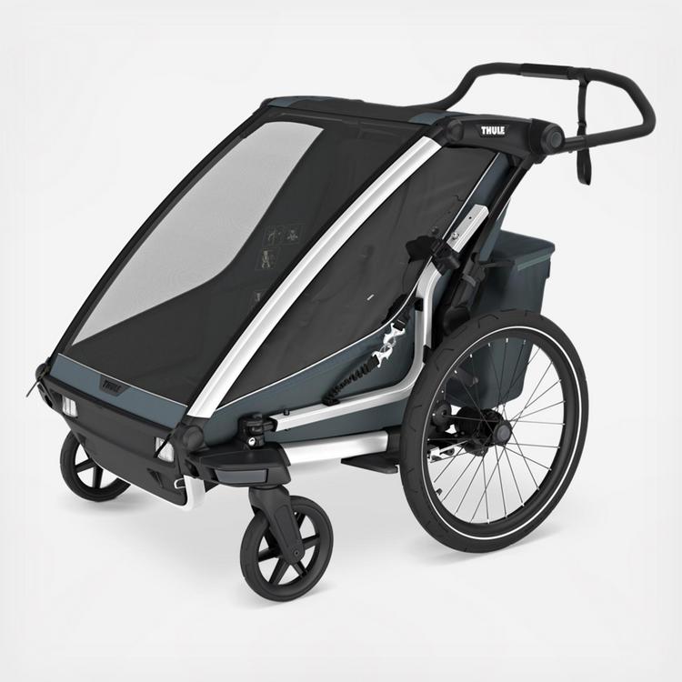 The all-in-one solution. Thule Chariot Cross 2 can easily be turned into a great training companion with a Jogging Kit or a Ski Kit (sold separately). Transitions between activities are smoother and more comfortable than ever for both parent and child.