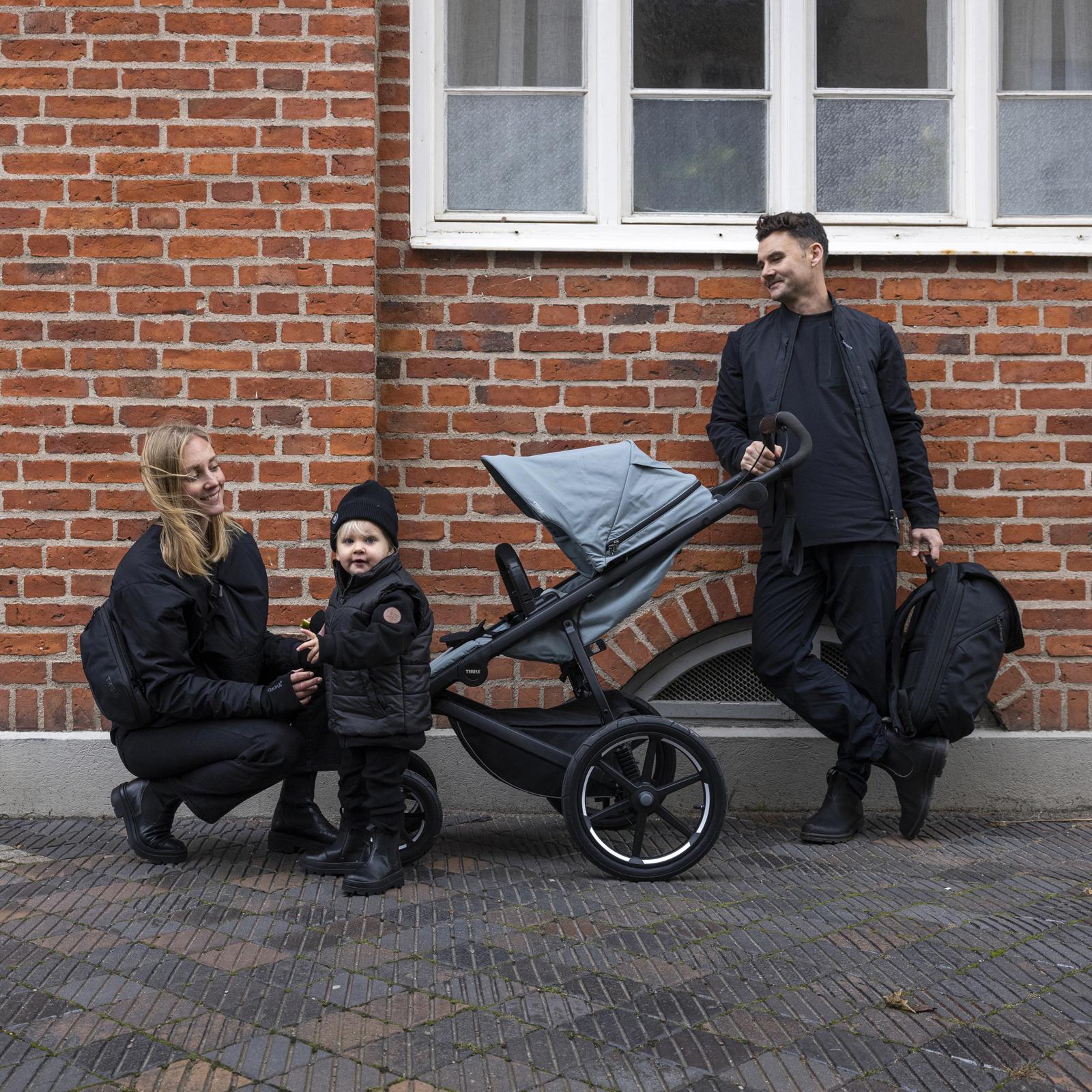 The all-terrain stroller black. Thule Urban Glide 4-wheel is a city-friendly, all-terrain stroller that's perfect for newborns and toddlers. As the ultimate full-size urban stroller, it seamlessly blends comfort, functionality, generous storage capacity, and performance on any surface. Designed for everyday use, it allows for unparalleled maneuverability. Glide through tight corners and crowded spaces, whether you're strolling city streets or conquering rough terrain. Thule Urban Glide 4-wheel is a city-friendly, all-terrain stroller that's perfect for newborns and toddlers. As the ultimate full-size urban stroller, it seamlessly blends comfort, functionality, generous storage capacity, and performance on any surface. Designed for everyday use, it allows for unparalleled maneuverability. Glide through tight corners and crowded spaces, whether you're strolling city streets or conquering rough terrain. Experience the superior suspension provided by the air-filled tires, which provide a smooth ride even over high city curbs or woodsy paths. From paved city streets to the rugged outdoors, the Thule Urban Glide 4-wheel is designed to adapt and perform. The twist hand brake gives you smooth speed control on any terrain, and the one-handed, compact fold makes storage and transportation easy for active parents. With an enhanced cargo capacity that can hold up to 10 kg. Thule Urban Glide 4-wheel provides ample space to stow away all your essentials and more. From diaper bags and groceries to shopping bags and personal items, you have the freedom to bring along everything you need for your adventures.